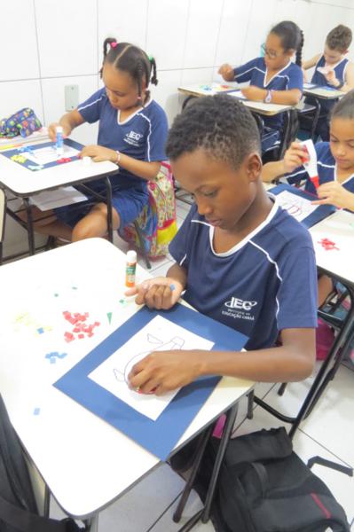 As aulas de arte do IEC estão muito criativas! Na nossa última aula, os alunos do 3º ano realizaram a montagem de um lindo mosaico, estudando as formas.